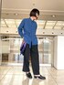 毎シーズン好評のタイロッケンデザインのシャツを使ったコーディネート。 足元が見える涼し気な同素材のパンツのブラックカラーを合わせてリラックス感もありつつ上品なコーディネートを目指しました。 大判の柄スカーフをベルトループに通せばよりこなれ感のあるスタイリングに。