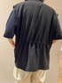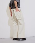 トレンドのミリタリーベストをメインにコーディネートしてみました。 ミリタリーベストは武骨で男らしい印象が強いですが、パンツを上品なワイドフレアパンツを合わせることで、カジュアル過ぎないスタイリングとなりました。 サスペンダーのチラ見せもこなれ感が演出出来ます。