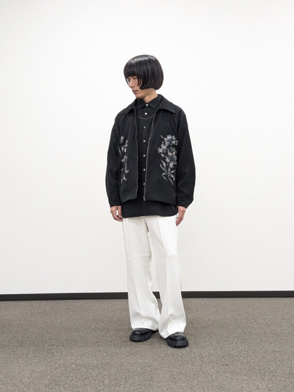 秋にピッタリなブルゾンを使ったコーディネートです♪ 暗くなりがちな秋冬のコーディネートですが、ホワイトのスラックスを合わせることで明るい印象になりますね♪