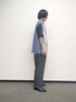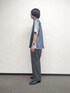 ブロックデザインのシャツを主役にコーディネート♪ ブルーとグレーの組み合わせは見た目も涼しく魅せてくれますね♪