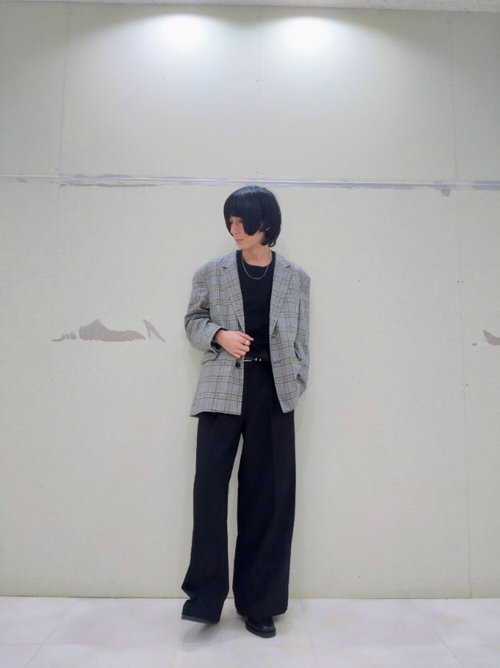 クラシックな雰囲気のジャケットを使ったコーディネート。 ジャケットを主役にシルエットで差をつけました。