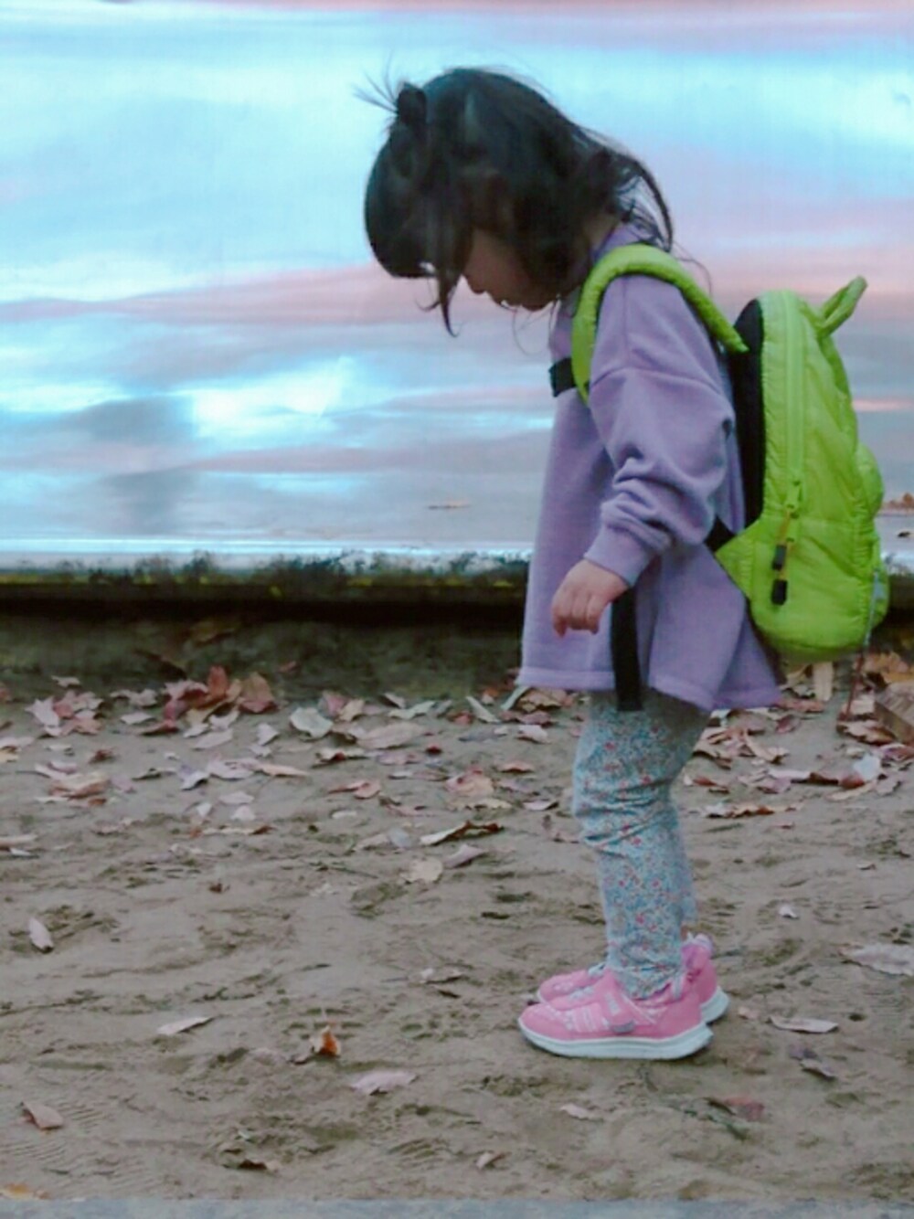 公園ルック。 バースデイで買ったくすみパープルの スウェットがお気に入り。