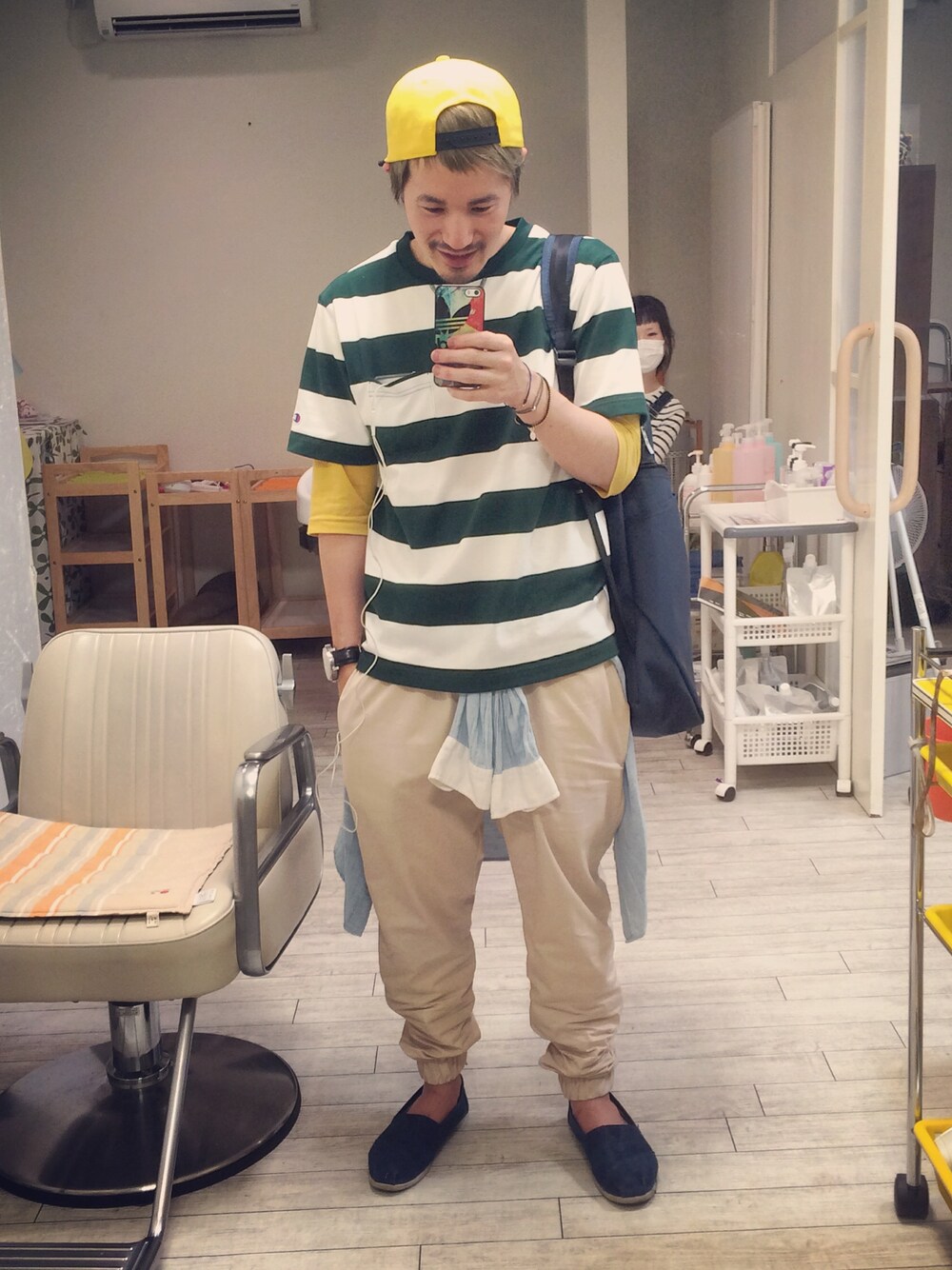 初めてのベージュリブパンツ✨ オッさんに見えんよーに気をつけんと(๑╹ω╹๑ )…笑 チャンピオンのボーダー初おろし☺︎ 更新何気に順調! 今日もお疲れっしたー!