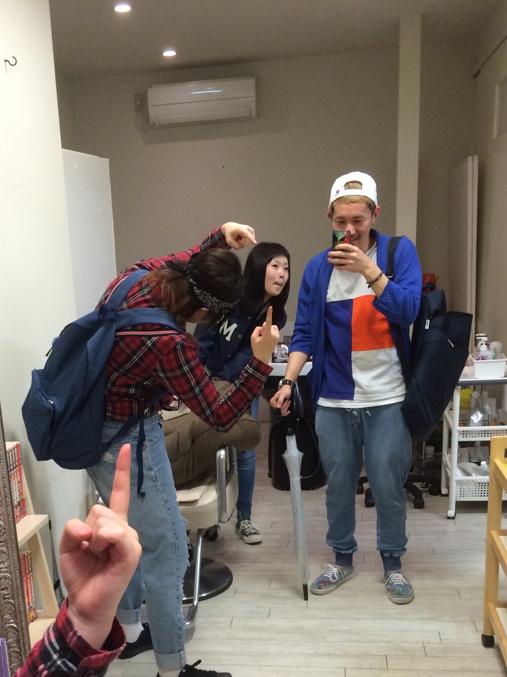 今日はスタッフも参加させてみました!꒰ू•௰ू•๑꒱笑 仲良いの伝わりますかね?😁 スタッフのなっチャンが秋葉系今日は決めて来た記念にコラボっちゃいます꒰ ॢ⚫͈ف⚫̤ ॢ꒱笑 後ろのまいちゃんも参加で☺︎ いつとも馬鹿やってる3人トリオでw😋