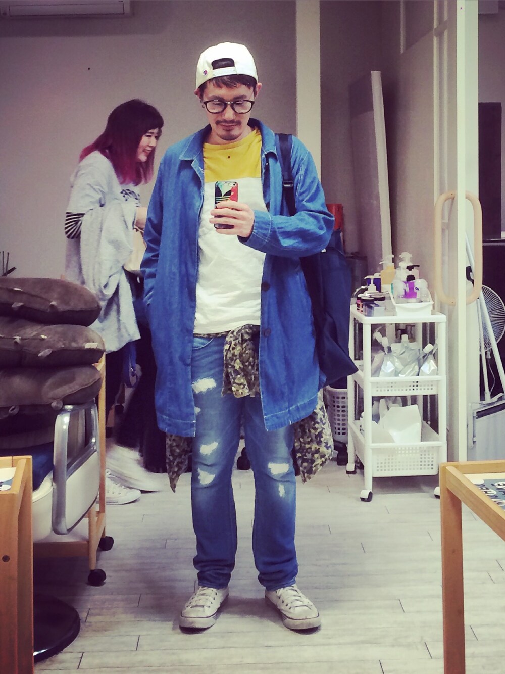 ぽんぽこKJのジャケット/アウター「10ozデニム ステンカラーコート」を使ったコーディネート