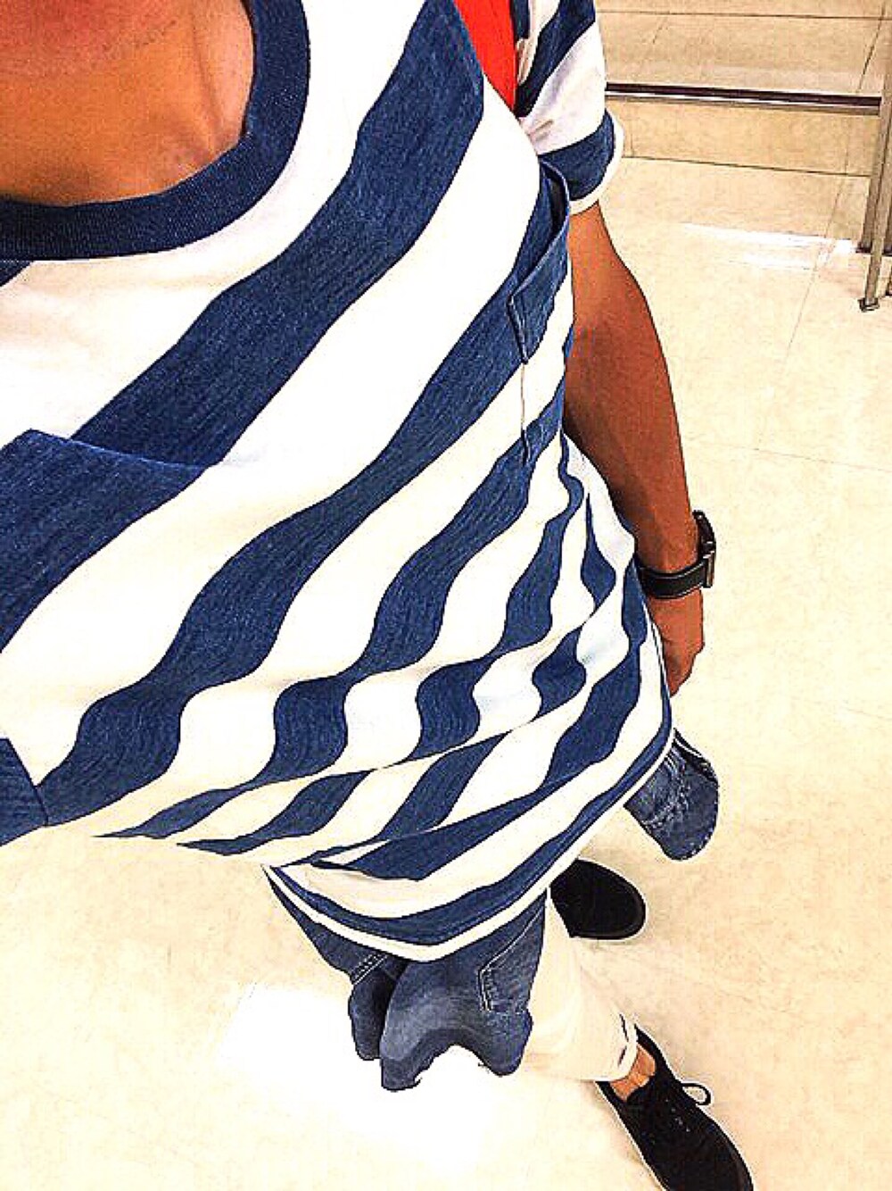 Tシャツ1枚だと物足りないんでデニムシャツの腰巻きスタイルにしてみました^ ^ 部活動もあってめっちゃ腕焼けちゃってます…笑