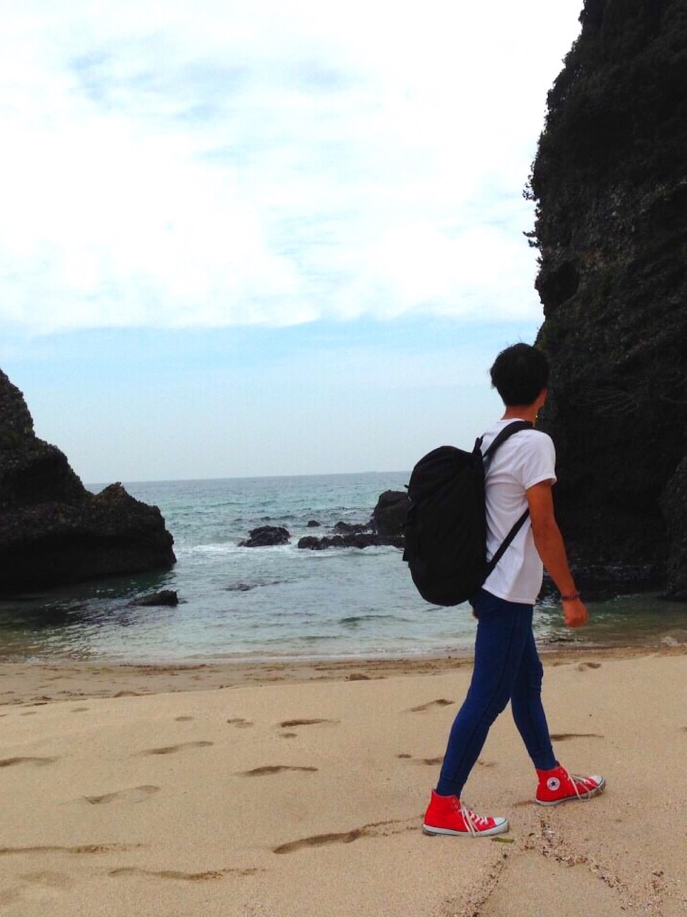 伊豆旅行に行ってきました! 曇りとはいえ、海はすごく綺麗でした^ ^ コンバースのハイカットはプレゼントしてもらったものですがシンプルな格好にはとても映えますね!