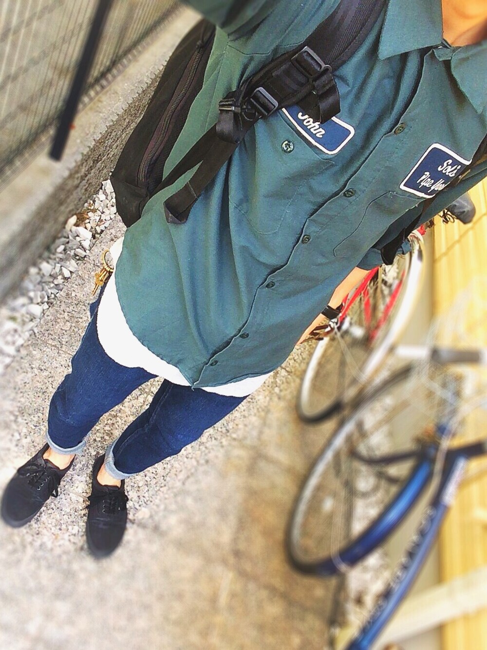 早くも夏の気配が感じられるようになってきたような… つい最近までブルゾンなどのアウター着てましたけど厳しくなってきました笑 シャツは古着屋のリメイクでボーイスカウトシャツっぽい加工になっています! レイヤードやシャツ出しスタイルは春っぽさの余韻ということで。シャツ1枚のシンプルさに少し遊びを加えるのがいいですね^_^ ロールアップで爽やかさも感じさせようとするコーデにしたつもりです笑