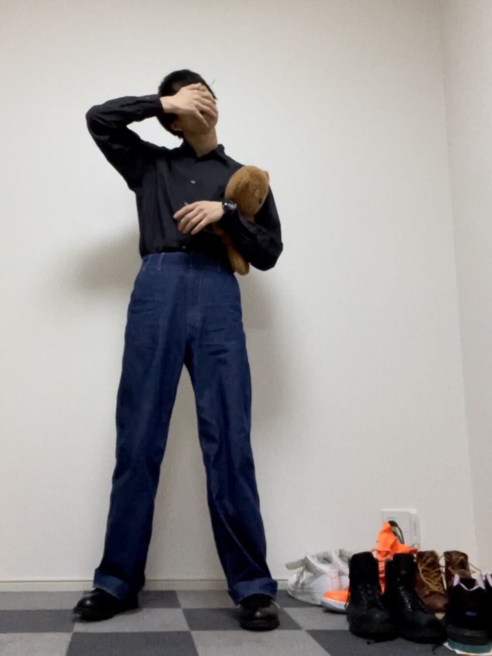 ただの服好きけんしー(YouTube)のデニムパンツを使ったコーディネート