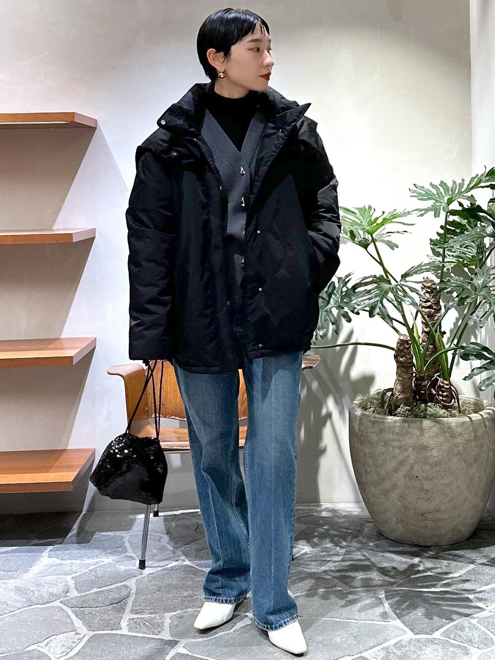 kaho haezuka(ADAM ET ROPE' ミント神戸)のブーツ「MOL レザーワイドシャフトブーツ」を使ったコーディネート