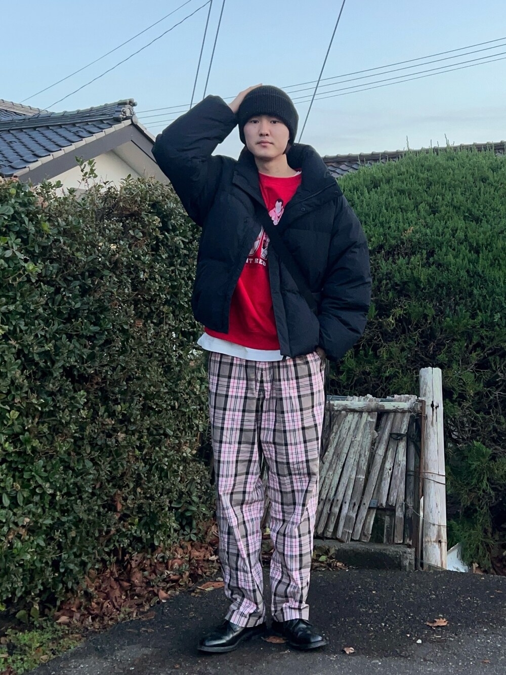 ☁️6℃ 中の派手も外の黒でまとまります◼️😌 ダウンジャケットはストリートにもキレイめにも広いジャンルで着まわせるから好き @tamakenpi