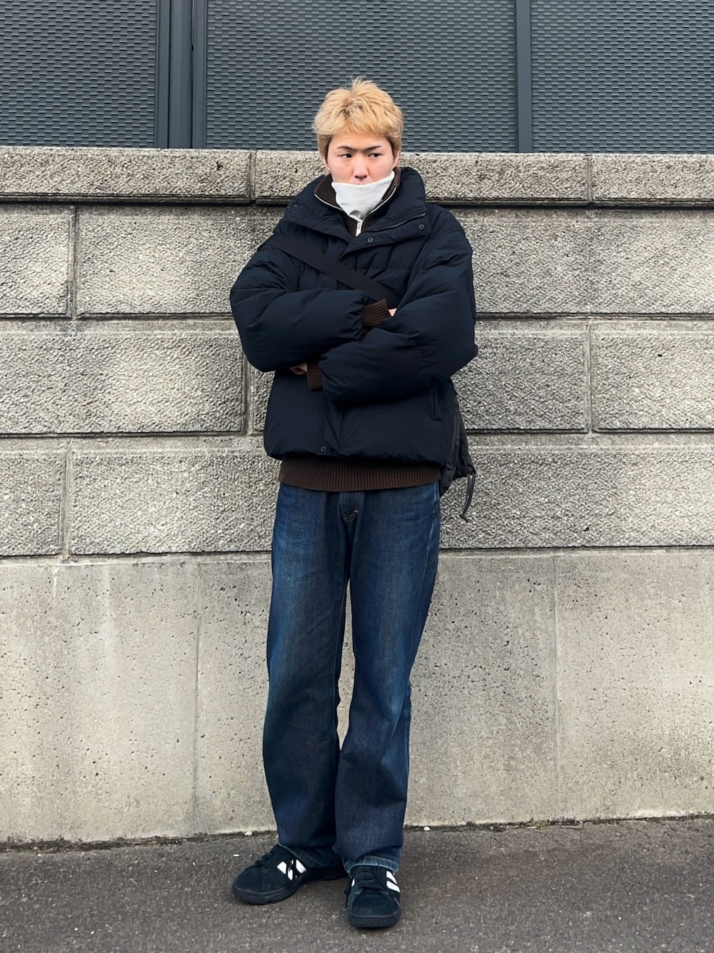 ☁️5℃ 首元レイヤードが雪国定番スタイルじゃ。 足元で首元の黒白拾うのがこなれポイント☝️ @tamakenpi