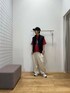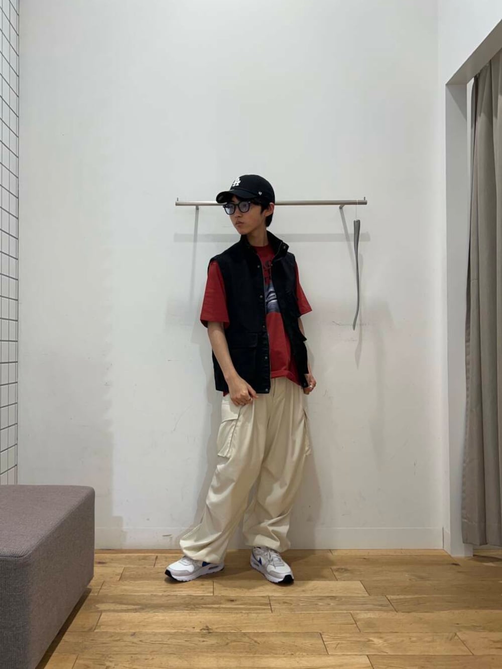 今回は全体的にミリタリーな雰囲気のコーデにしてみました!黒のベストもかっこいいですし、差し色で赤色のTシャツを使ってみました!Tシャツはバックトゥーザ・フューチャーのコラボ商品にもなっているのでぜひ試してみてください!