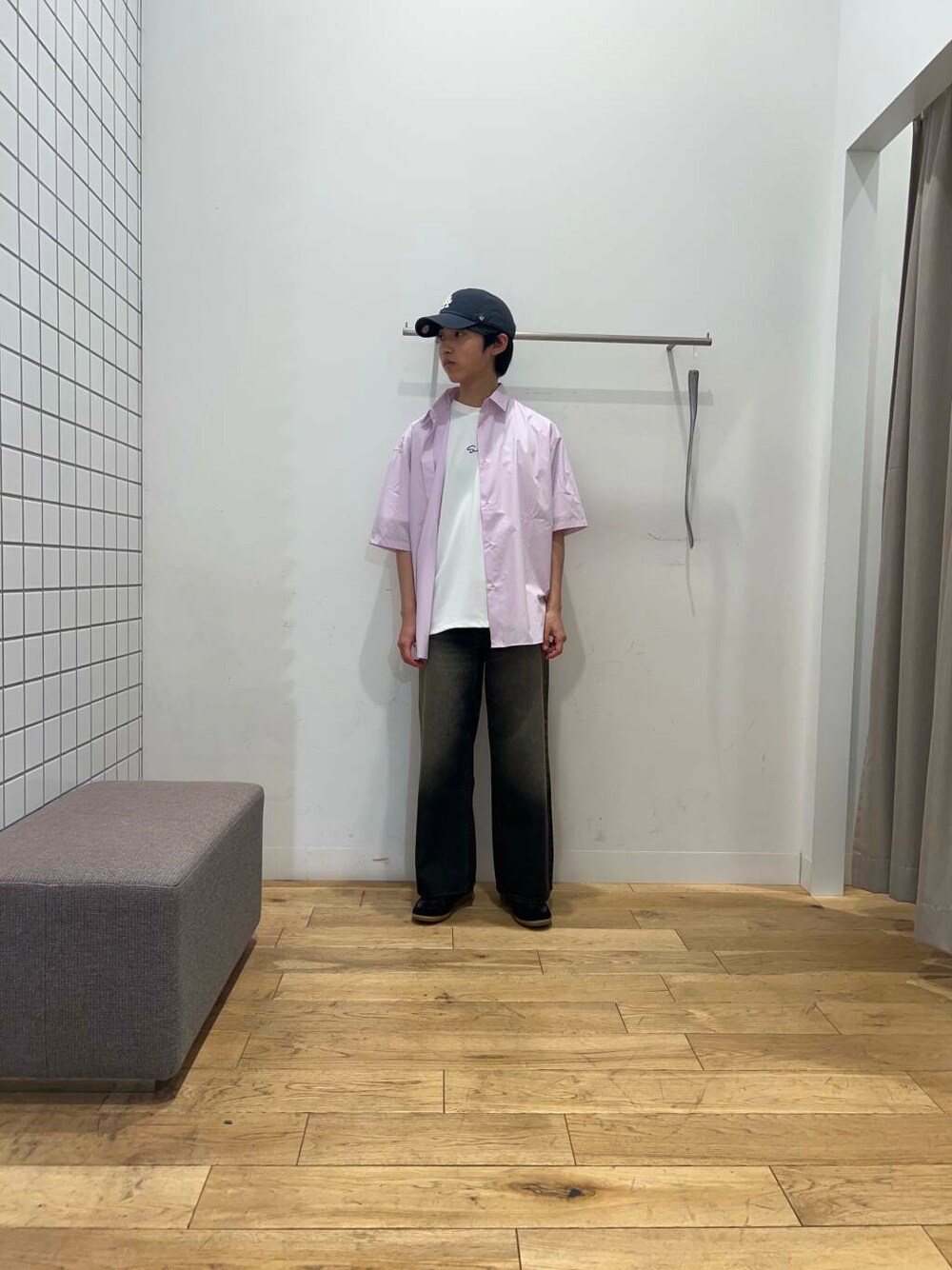 今回は夏にぴったりな爽やかカジュアルスタイルです! 淡いピンクの半袖シャツが季節感とやわらかさを演出し、インナーの白Tが抜け感をプラス。 ブラックのワイドデニムで全体を引き締め、ゆるさの中にも程よいバランス感が光ります。 キャップを合わせてストリート感を加えた、こなれ感のある休日コーデです!ぜひ試してみてください!