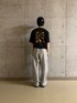 今回はジュラシックワールドのコラボTシャツを使ってみました!ブラックをベースにオレンジのロゴがいい差し色になっていて、キャップの文字の色と揃えてみました!下はスウェットパンツでとても履き心地が良く、どのアイテムとも合わせやすいと思います!ぜひ試してみてください!