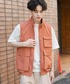 落ち着いた深みのあるオレンジのベストとルーズなデニムがアウトドアテイストを感じさせるスタイル。自然体のラフさの中に、キャップで程よくストリート感をミックス。アクティブな一日にぴったりのコーデです。ぜひ試してみてください!