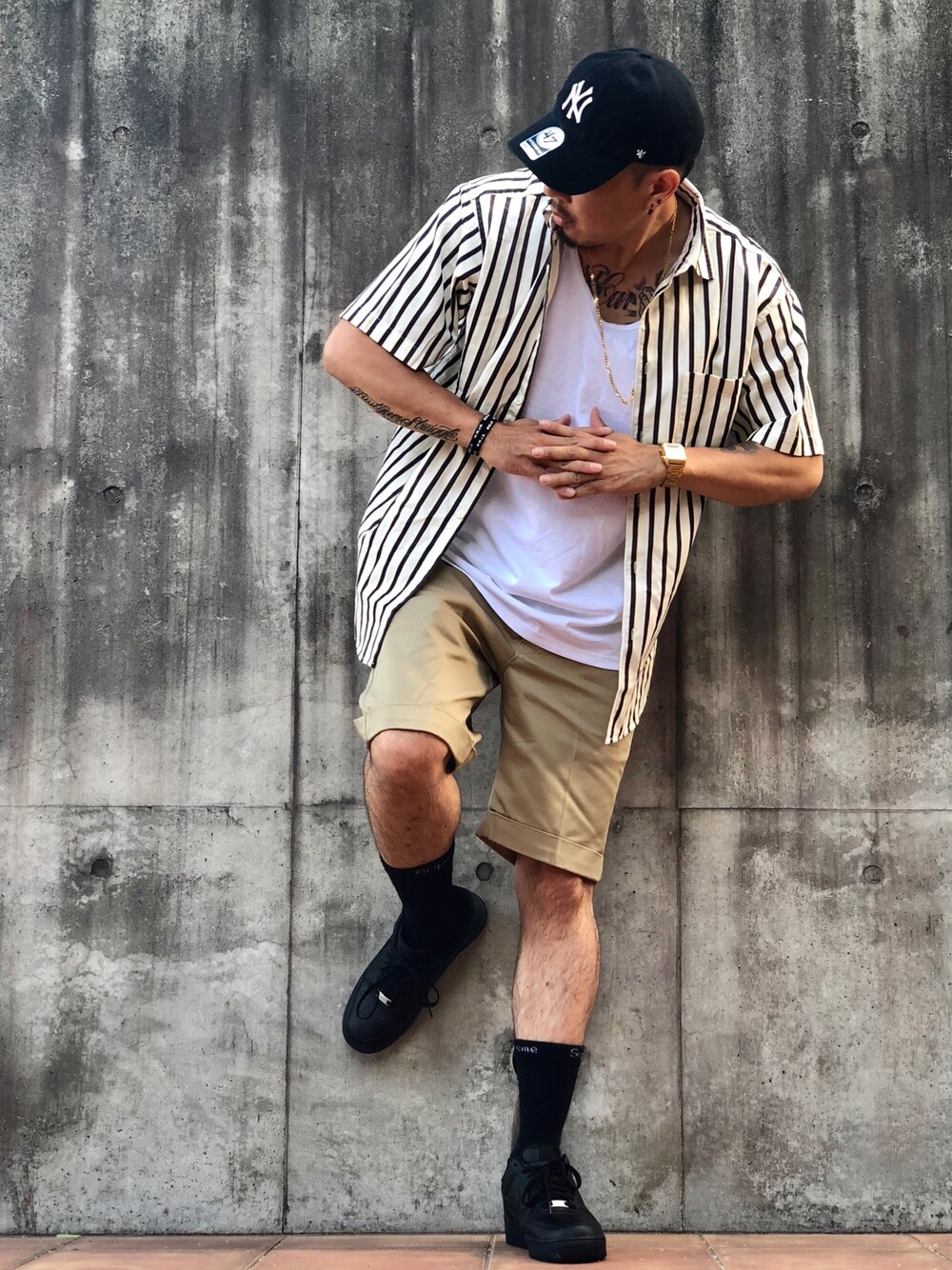 Good morning 🇺🇸 コーディネートは撮り溜めの📸でした🎬 都内はまれにない6月中に梅雨が明け🌂 そして、7月に入った昨日も快晴でした⛅️🌤☀️ 夜勤明けに会社の仲間と寝ずに江ノ島方面へ向かい🚗💨 2年振りの海水浴🏊♂️✨ やっぱり海は楽しいし疲れが吹き飛びますしリフレッシュできますね😊 が、、、 その後悲劇に見舞われるとは🔥🔥🔥 人生で1日でこんなに日焼けしたの… 初💦 ってくらい焼けてしまい😭 腕と足がヒリヒリ痛くて火照り始めやばすぎました←もちろん現在もですが😓 何事も楽しむ時はほどほどに⚠️ 勢いでの行動や過ごし方には注意しなきゃですね🤦♂️💦 ➖➖➖➖ CODE ➖➖➖➖ ストライプシャツをオープンに着こなしてみました😬 キャップ&足もとはブラックにクールに🤔 アクセサリーはゴールドをスパイスに👍🏅✨ 僕なりの大人っぽく仕上げたStreet Styleと言ったところでしょうか🤭 ➖➖➖➖➖➖➖➖➖ 新しい月になりましたが、先月も皆様✨ 見て下さり… 仲良くして下さり… 有り難うございました✨🙏✨🙏✨🙏✨ 7月も宜しくお願い致します❤️💙❤️ †Kenwayne†