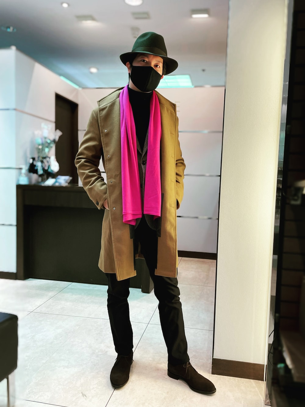 ティモーネ金沢さんにて撮影しました! JOHN SMEDLEYのピンクのストールを購入しました🧣 お気に入りです♪