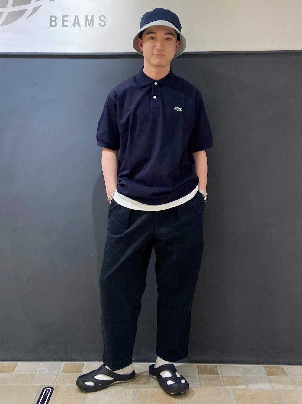 【低身長通信vol.12】こんにちは!今年もラコポロの季節が到来!全体配色を《ネイビー×ブラック》でスタイリング♪【165cm/58kg】の私は〈LACOSTE × BEAMS〉別注ポロをサイズ2のXS指定。インナーのタンクトップレイヤードをやっと覚えてきた♪スラックスと合わせてビジネス使いも叶う。若手の皆さん、これ着て仕事したら、のびしろしかないわ♪