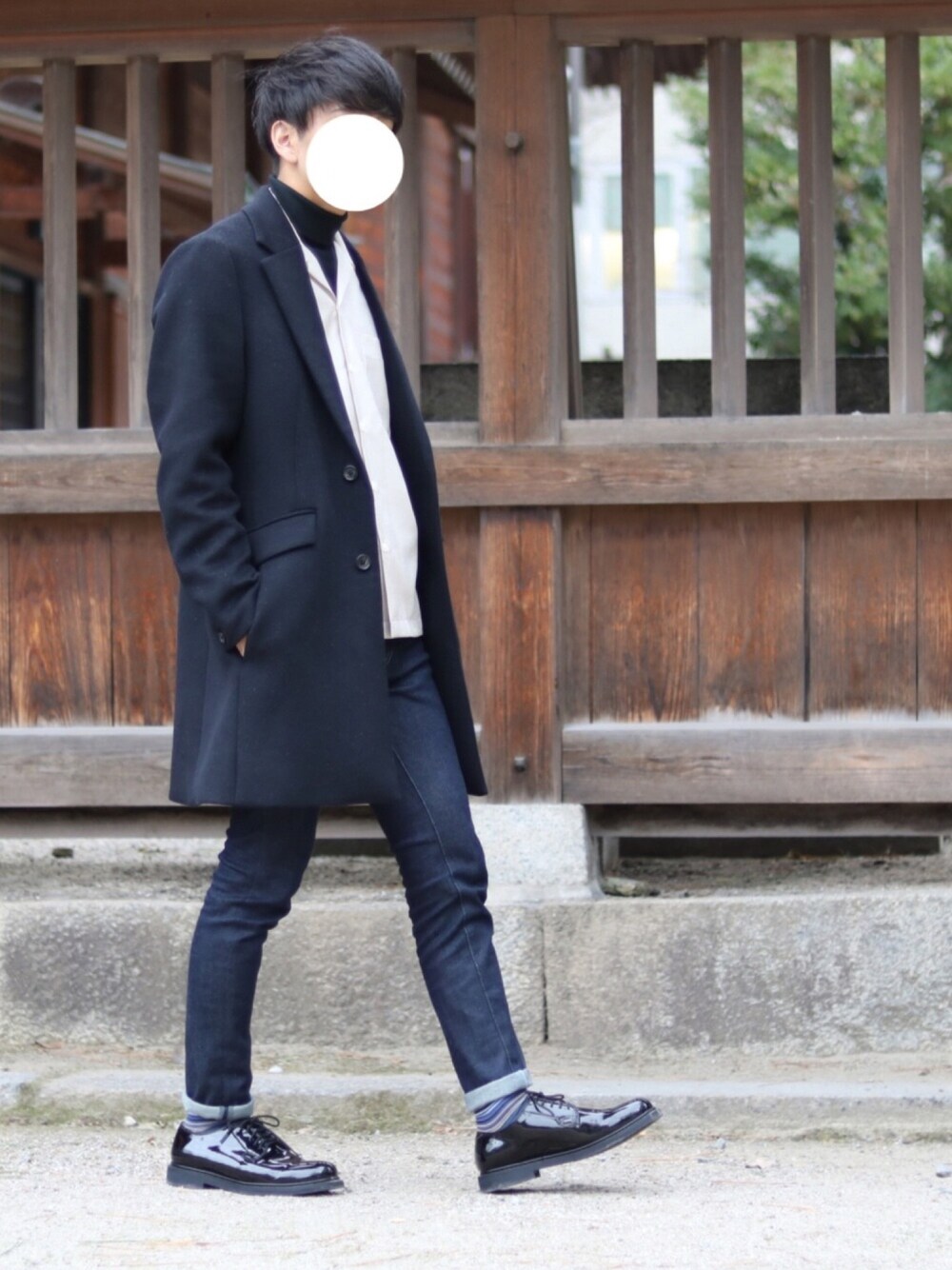 けんたのチェスターコート「【STUDIOUS】ストレッチビーバーメルトンチェスターコート」を使ったコーディネート