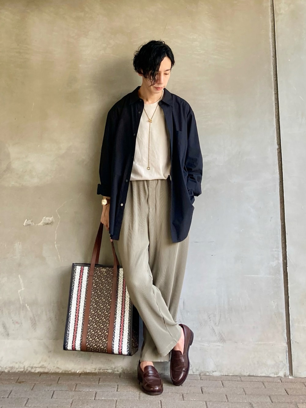 いつもご覧いただきありがとうございます😊 『BURBERRY(バーバリー)』のモノグラムトートを使用したコーディネート🐎 バッグの風格に負けないように黒シャツやカーキのパンツで大人っぽく👨 茶ローファーやゴールドアクセサリーで品良くゴージャスに✨ _________________________ ブログ ➡️ パパでもドレス ブログでは ・おすすめのプチプラアイテム ・着こなしのポイント ・トレンド情報 などをご紹介しています🌟 プロフィール(🖥)より ワンクリックでアクセス可能です! 宜しければチェックしてみてください✅