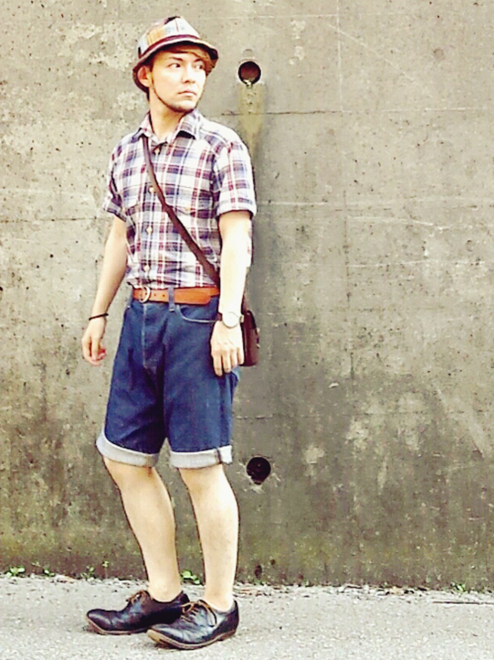 穴から何か出てますね。。。 今回はハットとシャツをチェック柄で合わせてみました☆ パンツはデニムに見えてコットン素材なんです!