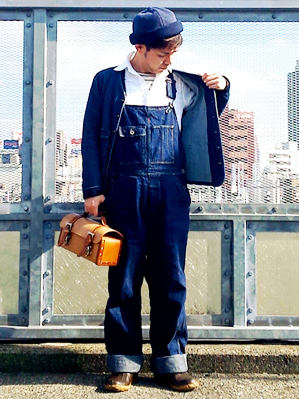 オーバーオールコーデ☆ 全然見えないですけど釣り針モチーフのピンを 胸元に付けてみました✨ めちゃくちゃ修理とか上手そうに見えますけど 僕は機械音痴です。。。