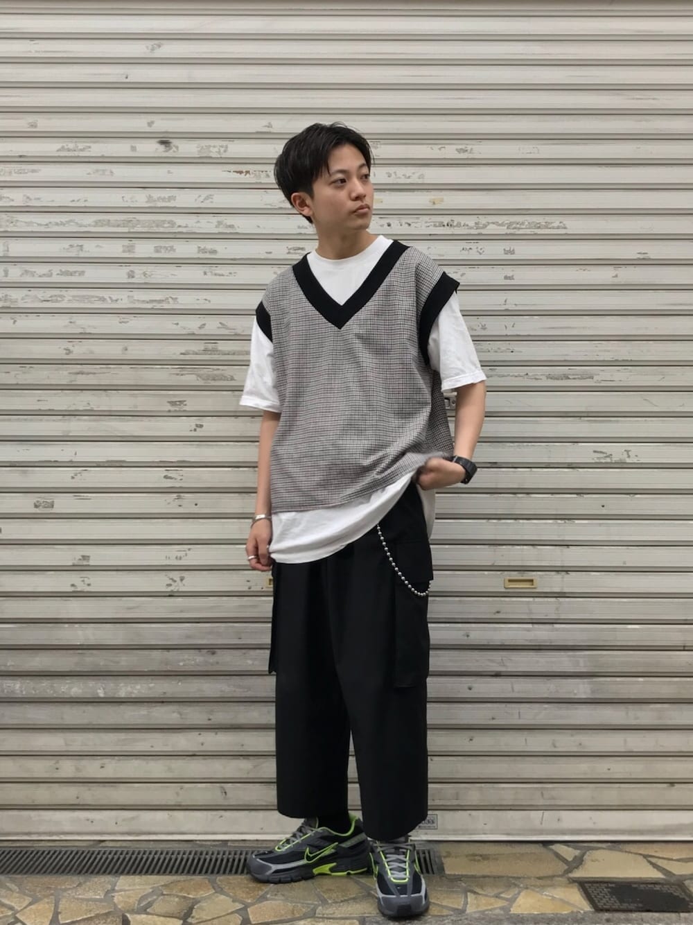 kento fujiwara (WHO'S WHO gallery ZOZOTOWN/PALCLOSET店)のシャツ/ブラウス「VネックチェックBIGベスト」を使ったコーディネート