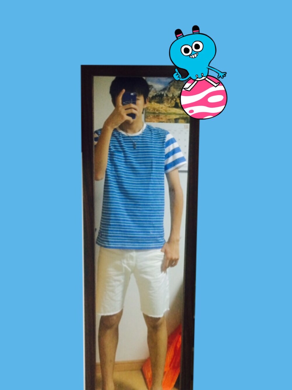 夏服スタイル〜☀️ 半袖短パンで、Tシャツは爽やかな水色系です✌🏼️