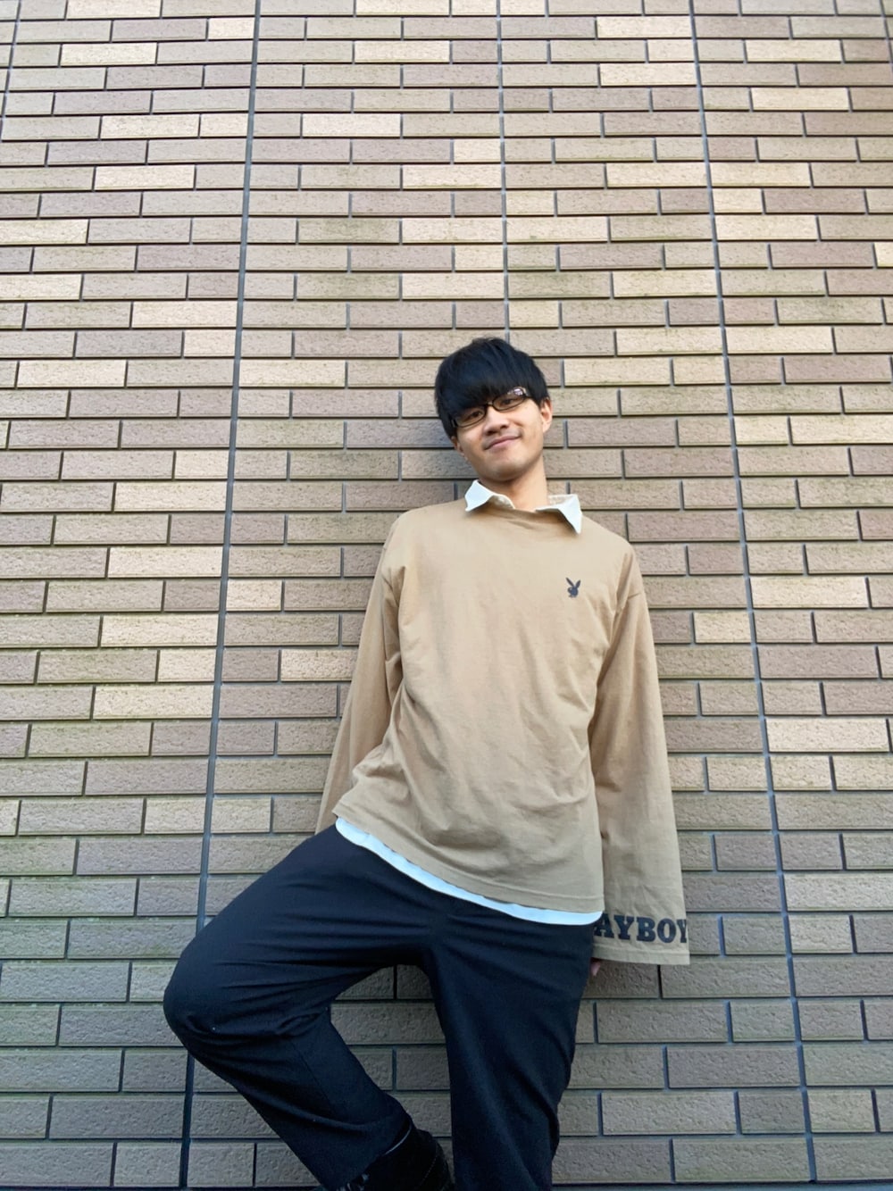 けんとのTシャツ/カットソー「PLAYBOY プレイボーイ act'm 別注 袖ロゴプリント オーバーサイズ ワイドスリーブ 長袖 カットソー」を使ったコーディネート