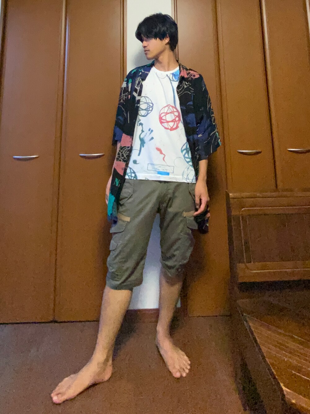 閲覧ありがとうございます! 適当に羽織ったら意外と決まったコーデです! 柄Tシャツと柄シャツだけで面白く決まるので夏の簡単コーデにぜひ試してみてください! Instagramもやってますのでよかったら遊びに来てください! コメントお待ちしてます!