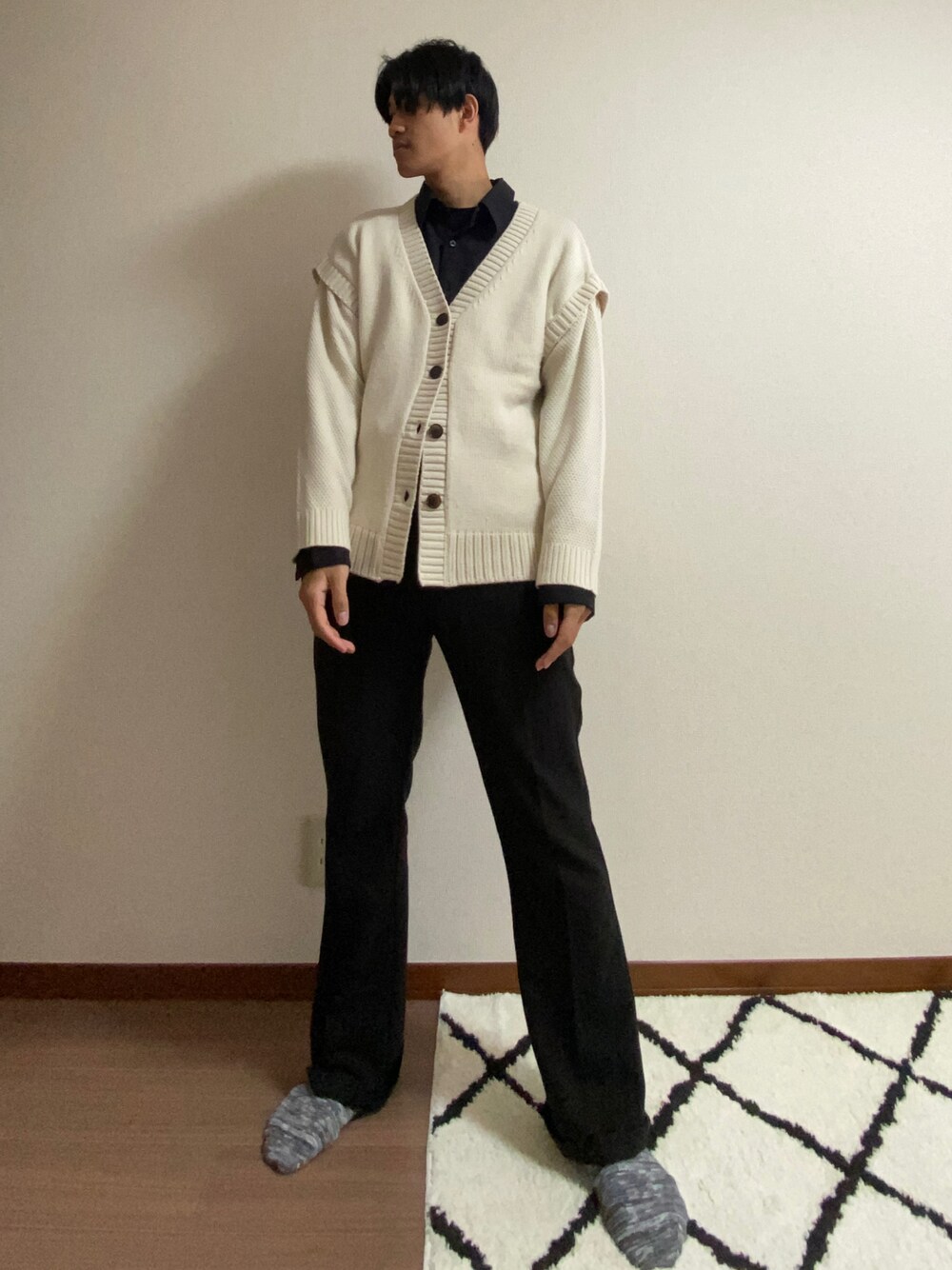 閲覧ありがとうございます! モノトーンのビジネスコーデです! オフィスカジュアルを意識しつつ少し砕けた印象を作り出せるコーデになってます カーディガンは袖を外してベストにもなるので温度調節もバッチリです! Instagramもやってますのでよかったら遊びに来てください! コメントお待ちしてます!