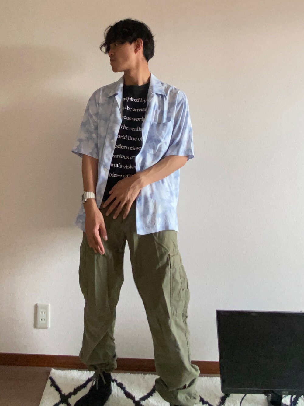 閲覧ありがとうございます!! すっかり夏なので夏仕様の柄シャツコーデです! ショートパンツはまだいい物に巡り会えていないので軍パンにしてみました! シューズはスニーカーでもブーツでもサンダルでも合うのでその日の気分で出かけられます!