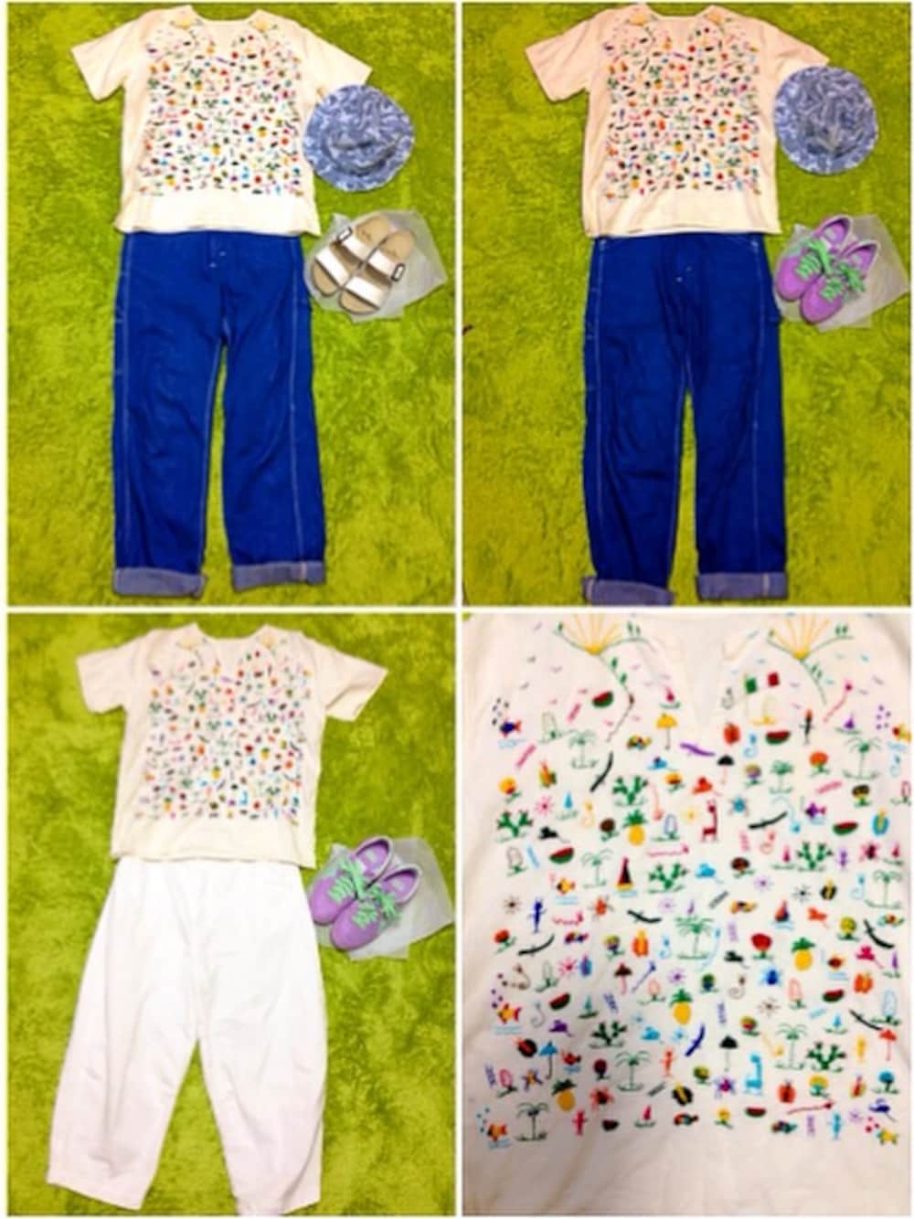 最近中崎町の古着屋さんでひとめぼれした刺繍シャツです□ ひとつひとつぜんぶかわいい刺繍で、色使いもほんとにキュート…虫とかカメとかフルーツとか、いろんなカラフルな刺繍がたくさん。 メキシコのおばさんがチクチクしたそうで… きなり色なのでホワイトのワイドパンツでもかわいいです◎ パープルとミントのスニーカーもお気に入りです。