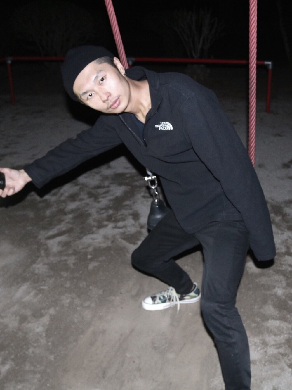 シンプルイズザベスト!! 細身のパンツに大きめのフリースを着てみました!! 全身黒だと寂しいので足に色をつけてみました。