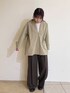 ハリのある生地のシャツと、ゆったりパンツで体型カバーしてくれるけどすっきり見えるコーデです✨ スキッパーシャツは、中に何を重ねようかわくわくしますね!