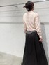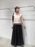 チュールシャツとニットがセットになったトップスは着こなし次第で自分らしく気分に合わせて着用できるので、わくわくする一着です♡ ピンクもブラウンも大人っぽいトーンなので一緒に着ても甘くなりすぎず、大人かわいい女性らしいコーデになります🩰 スカートは長さがしっかり欲しかったので、38のサイズで着用しています!