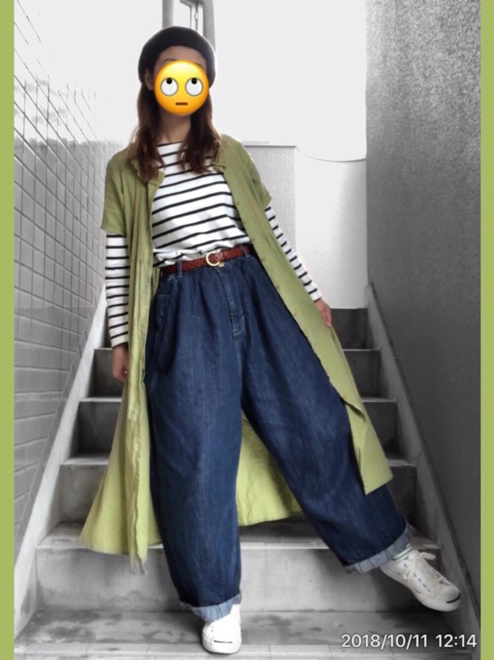 1週間ボーダーコーデ😗 4日目! とにかく緑が好きなんです。