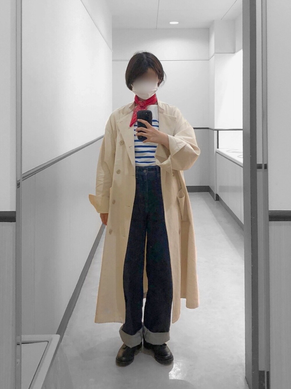 もけろのデニムパンツ「ワイドフィットカーブジーンズ」を使ったコーディネート