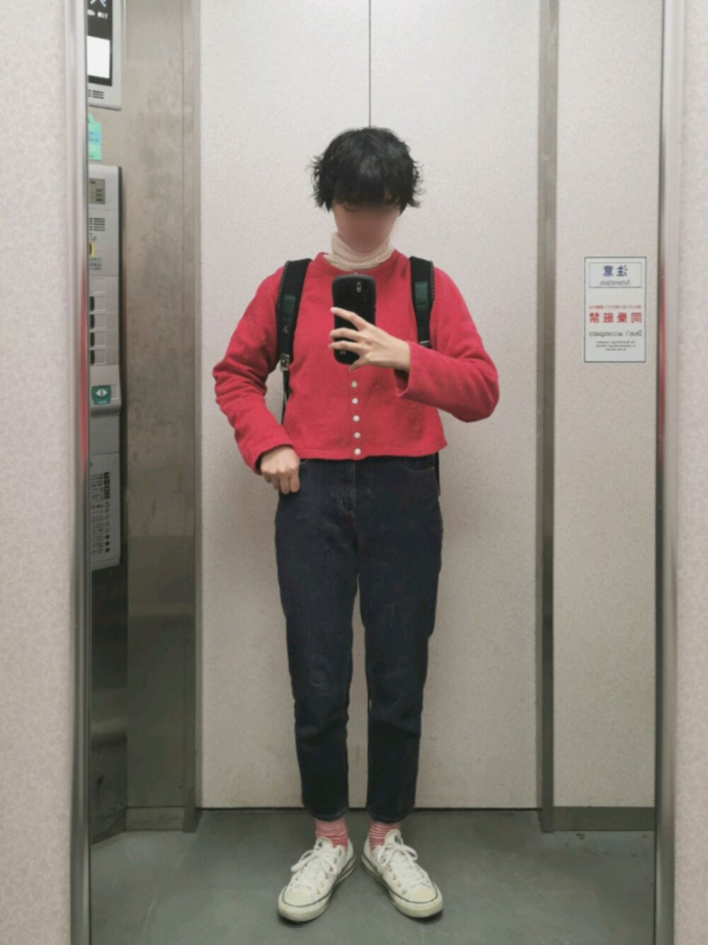 今日のコーデ 激寒なので上着追加しました。 靴下は赤いボーダー。 シンガポールの雑貨屋さんで買ったの。