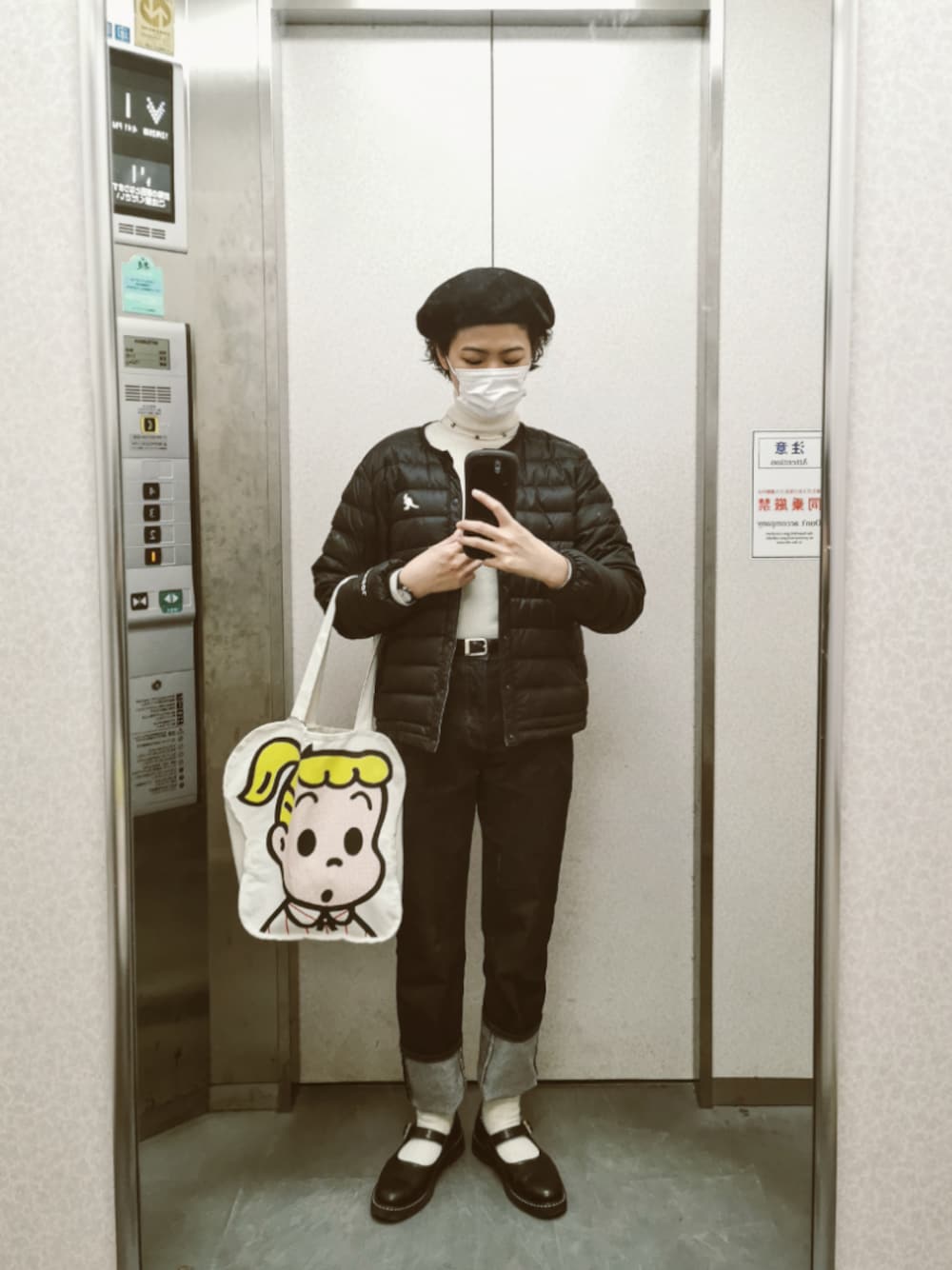 今日のコーデはモノトーン。 オサムバッグ可愛い涙