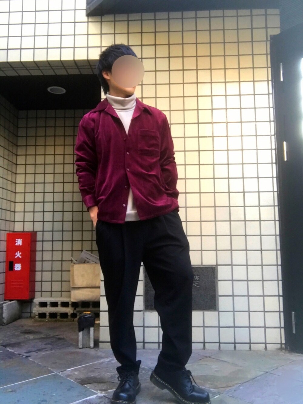 トレンドのパープル トレンドのベロア トレンドのオープンカラーシャツにタートルネックを合わせてシンプルでもトレンド感満載のコーデです☺️✨