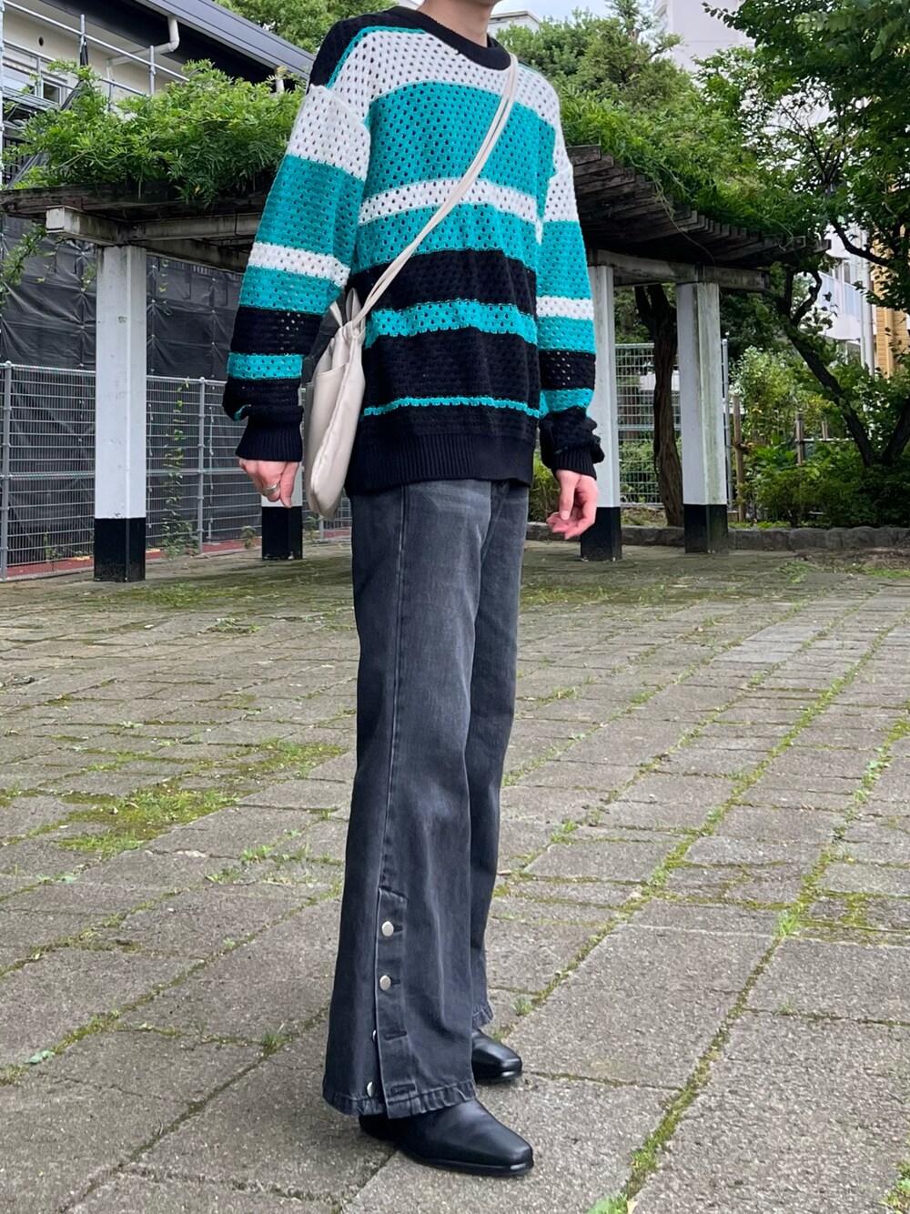 keisukeのニット/セーター「【Neucon / ニューコン】23SS ボーダーグラデーションニット」を使ったコーディネート