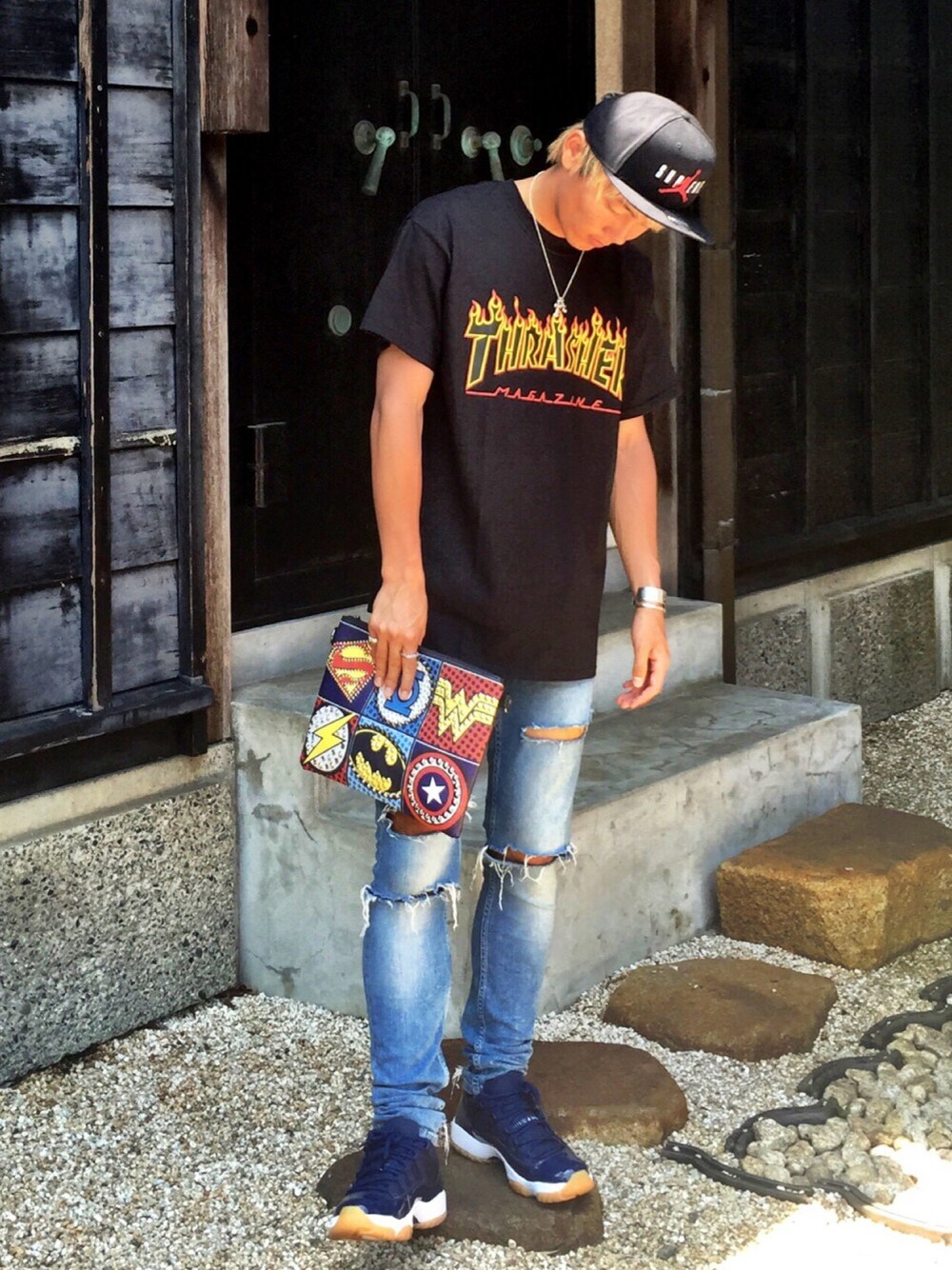 Cap...Jordan×Supreme Tops...Thrasher Pants...H&M Shoe...Jordan11 Necklace...Chrome Hearts ついに日本に本帰国しました✨ 今日は念願のラーメン二郎目黒店に行きます♡ THRASHERのTシャツは合わせやすいし、1枚でストリート感をMAX出せるのでオススメです! クラッチバッグはどこのかわからないんですが、一目惚れで買いました笑 Jordan11もsneakerheadsの方達にはたまらないものだと思います😎 いいね、セーブ、コメント、フォローよろしくお願いしますm(__)m