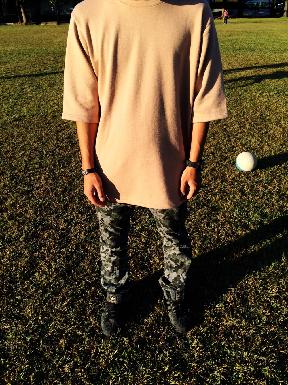バイト終わりの格好です。(笑) 公園で、キャッチボールたのしんでます(*⌒▽⌒*)
