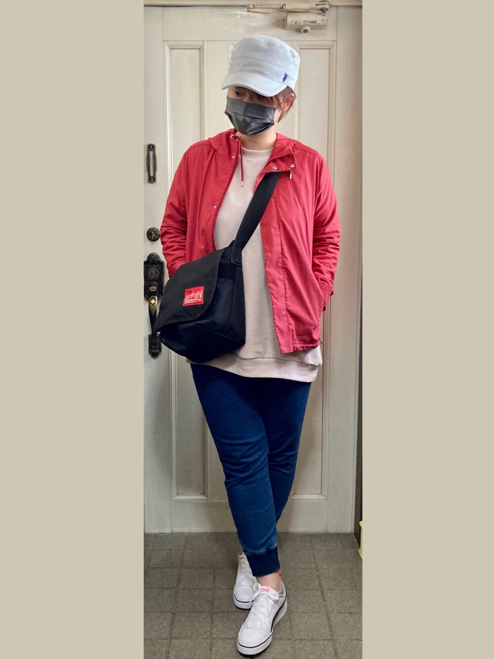 今日は楽ちんコーデ。 赤いマウンテンパーカーお気に入りです。 スニーカーは初おろし。