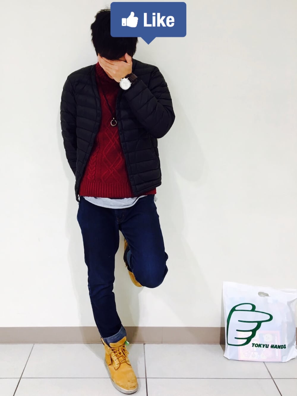 よきのニット/セーター「WEGO/サイドスリットケーブルタートルニット」を使ったコーディネート