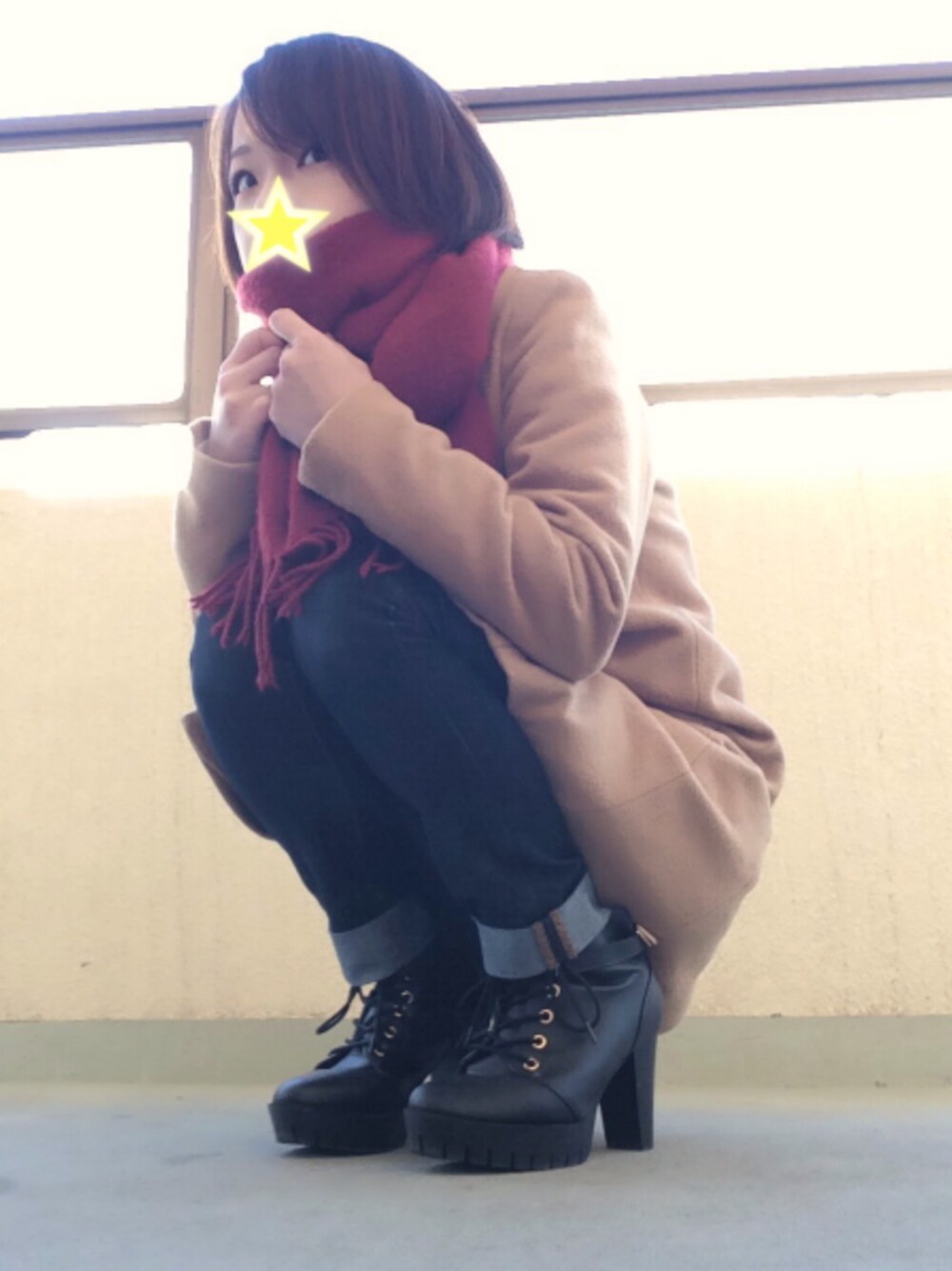 昨日の学校公開コーデ。 セルフタイマーで、後退りしてる時にパシャっと、、、、顔が切れたw(小窓参照) そのあと恥ずかしくなってしゃがんで撮ってたʔ•̫͡•ʕw