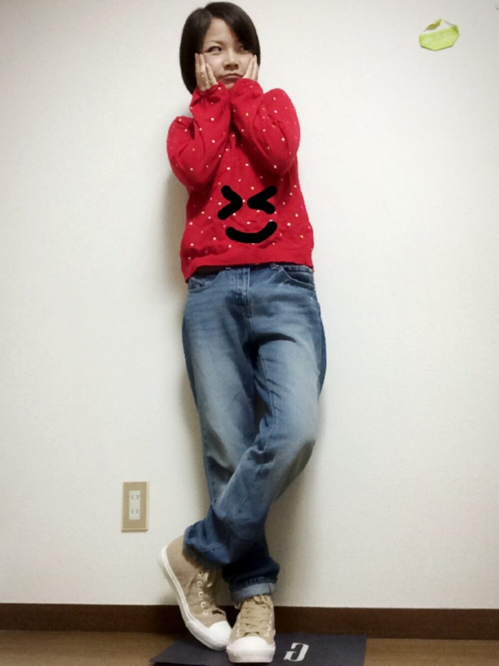 かなりラフでシンプルコーデ!!楽チン!!! びーびーさん主催の123フェスに参加します( ⌯᷄௰⌯᷅ ) またまたよろしくです*\(^o^)/* セルフだとなかなかニッと出来ず、、、 手で無理矢理ニッてしたみたけどやっぱり睨んでるみたいになるwww ていうか、目がやばいねこれ(*_*)眉毛もか なのでお腹に笑顔描いてみました。はい。