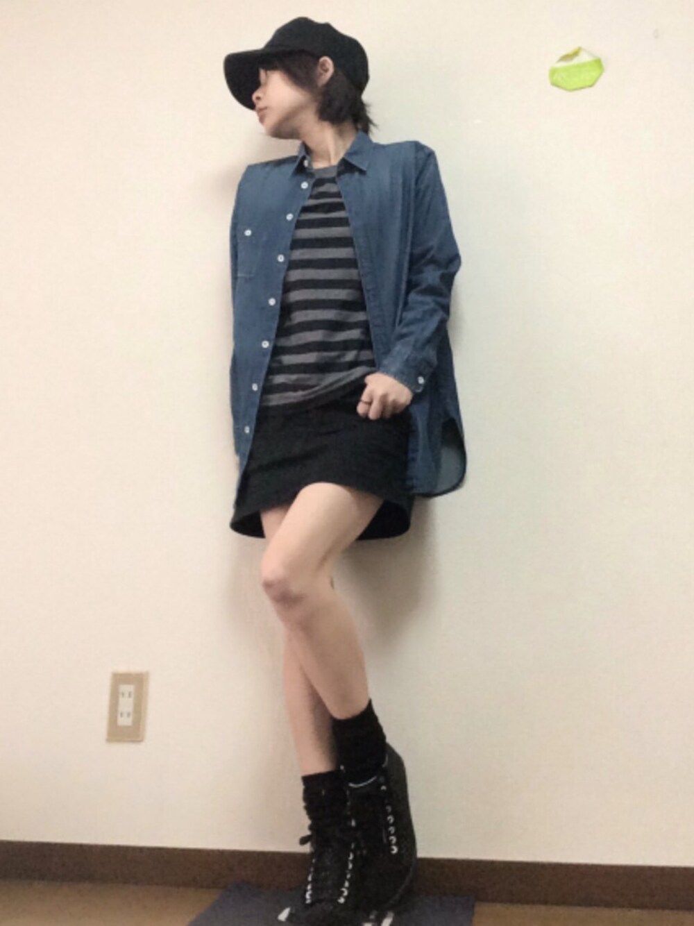 昨日のトップスだけ違うversion。 デニムシャツ買ったからついでに着て撮ってみたかったの。 髪が暴れてますね。。。 よし、月曜日頑張りましょー!!